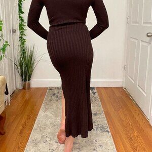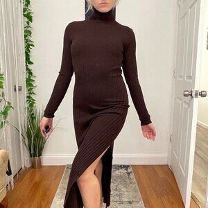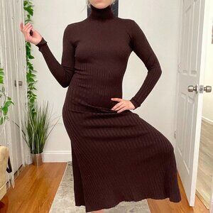 A.L.C Turtleneck Rib Knit Midi Sweater Dress Long Sleeve Size XS Brown