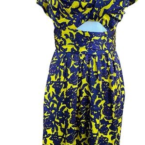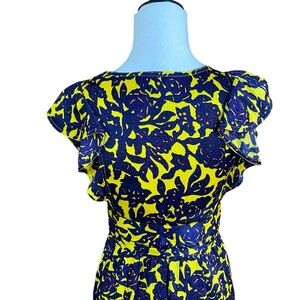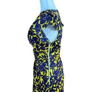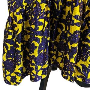 A.L.C. Valencia Silk Floral Midi Dress Yellow Purple Cut-Out Ruffle Hem Sz 2
