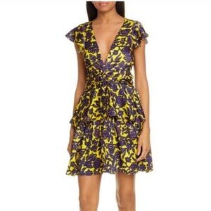 A.L.C. Viera Hammered Silk Twist Front Dress Size 0 Purple Yellow