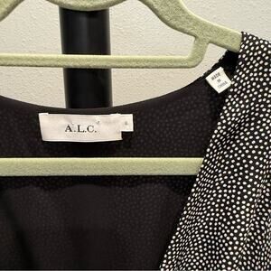 A.L.C. Viera Twist Front Silk Mini Dress Size 6 Black and White Patterned