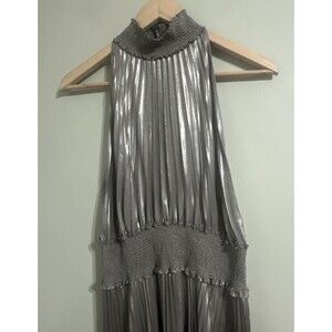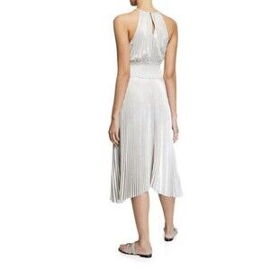 A.L.C Weston Pleated Midi Cocktail Dress Sz 8 Silver Metallic Sleeveless