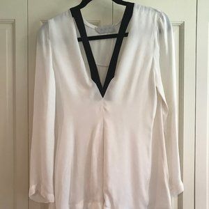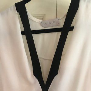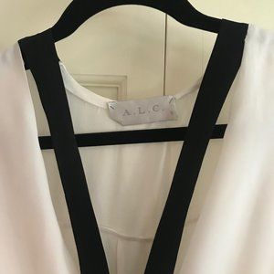 ALC White Chiffon Long Sleeve with Black V Trim. Size M.