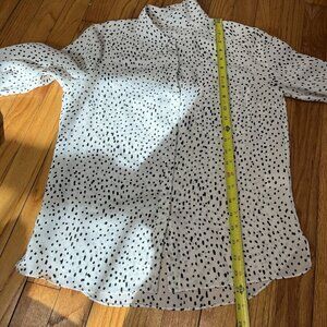 A.L.C. White Dalmation Polka Dot Print Silk Blouse Size 2 Staining on the cuff 14471