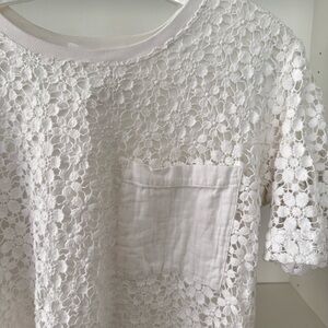 A.L.C White Lace Front Pocket Short Sleeve Shirt