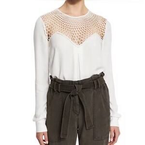 A.L.C. White Long Sleeve Blouse with Crochet Yoke – Size 4 minimalist