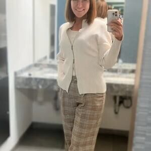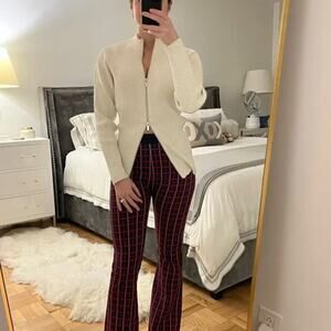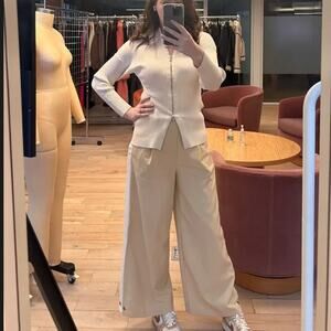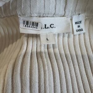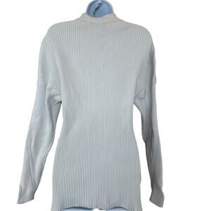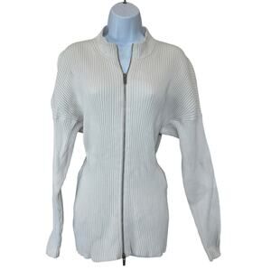 A.L.C. White Ribbed Knit Full Zip Sweater LARGE Work Quiet Luxury Designer $500
