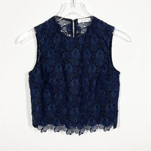 A.L.C. Women Size 0 Adriana Navy Blue Floral Lace Sleeveless Crop Top Shirt