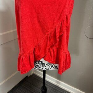 A.L.C. Womens Ava Ruffle Tank Top 100% Linen Sleeveless Cami Top Red Size S NWT. Lightweight linen Ava Tank from A.L.C. features an asymmetrical faux wrap hemline with a ruffle trim and spaghetti straps. Scoop neckline. 100% linen