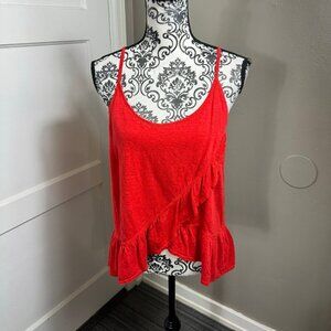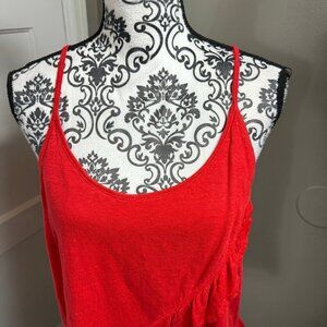 A.L.C. Womens Ava Ruffle Tank Cami Top 100% Linen Sleeveless Red