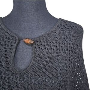 A.L.C Womens Black Open Weave Fringe Boho Poncho Sweater Sz OS Lightweight Chic