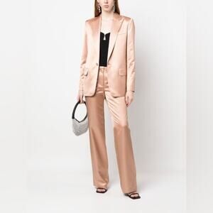 Straight-leg satin trousers from A.L.C. featuring salmon pink, satin finish, concealed front fastening, two diagonal pockets to the sides, two rear welt pockets and straight leg.