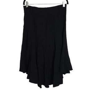 ALC Women's Midi Skirt Black Hanky Hem Paperbag Waist Lagenlook Pockets