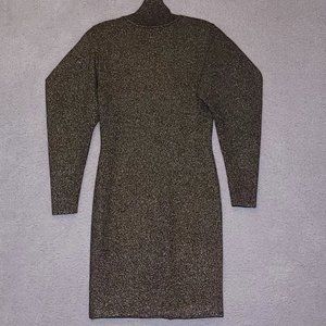 A.L.C. Womens Samuel Bodycon Dress Black Gold Metallic Mock Neck Long Sleeve XS