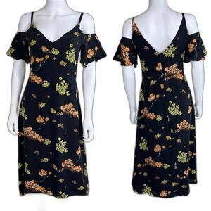 A.L.C. Women's Size 4 Lucy Black Floral Silk Midi Dress Flutter Sleeve Romantic
