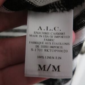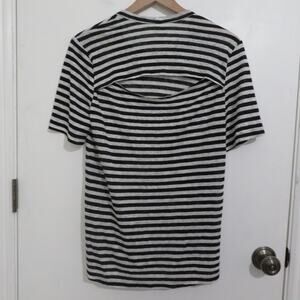 A.L.C. black and white striped linen top. Round neckline top with short sleeves. Top has a cutout hole in the back.