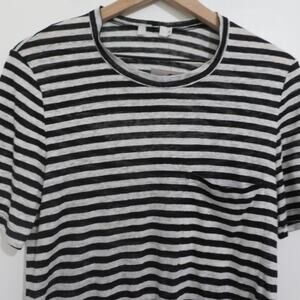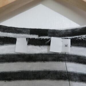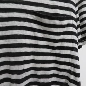A.L.C. Womens Sz M Black White Striped Linen Short Sleeve Top Keyhole Back