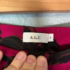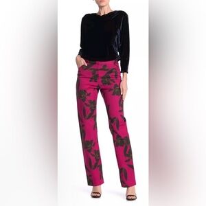 A.L.C. Women's Vaughn Floral Wool Blend Straight Leg Trouser Pink Size 4 Office