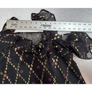 A.L.C Womens Willow Silk Metallic Ruffle Cold Shoulder Blouse Size 6 Black Gold