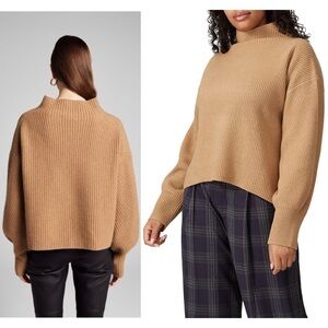 ALC Wool Cashmere Ribbed Knit Oversized Balloon Sleeve Boxy Mockneck Sweater XL