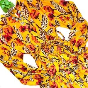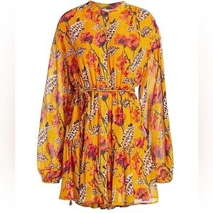 A.L.C. Yellow Floral Silk Jen Mini Dress Long Sleeve Belted Shirtdress Size XS S