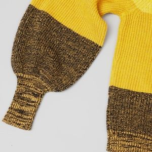ALC Yellow Mustard Color Block Turtleneck Sweater