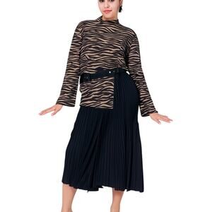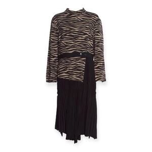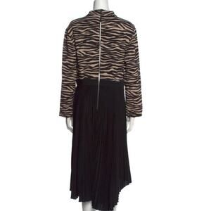 A.L.C. dress zebra animal print pleated midi black long sleeve size 14 designer dress alc midi dress cocktail party dress evening dress mock neck zebra stripe dress alc pleated skirt alc statement dress alc tent dress alc size xl