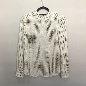 A.L.C. cream with black irregular dots, collar snaps in back, open back blouse