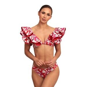 ALCATRAZ Swimwear Monarca Bikini Ruffles Size 38 Top Size Large Bottom