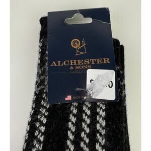 ALCHESTER & SONS Black White Scotty Plaid Wool Cashmere Blend Socks Sz 8-13 NEW