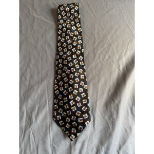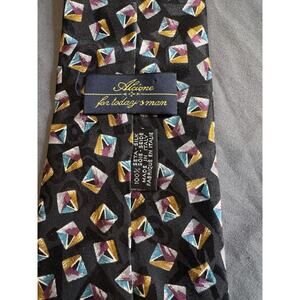 ALCIONE NECKTIE Mens Black with abstract squares 100% Silk LENGTH 60”
