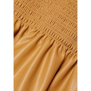 Allover smocking enhances this vegan leather drawstring miniskirt.