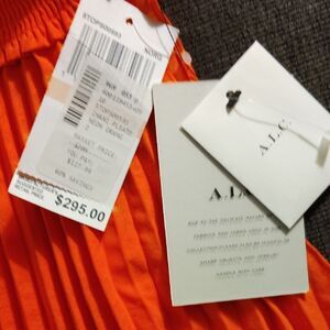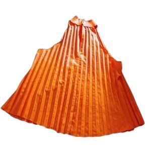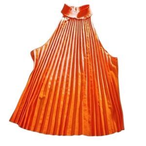 A.L.C. Neon Orange Pleated Tank Top with High Neck