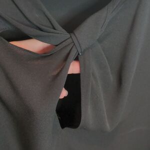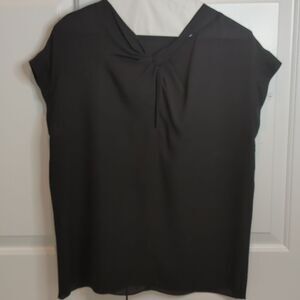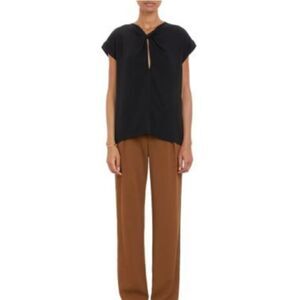 A.L.C. black semi-sheer silk crêpe de Chine twist-front Jazzy blouse. Relaxed fit, jewel neckline, twisted keyhole at front, cap sleeves, straight hem. Slips on