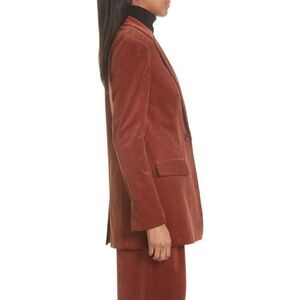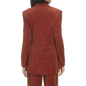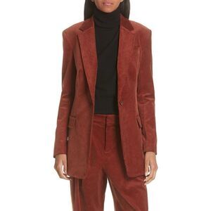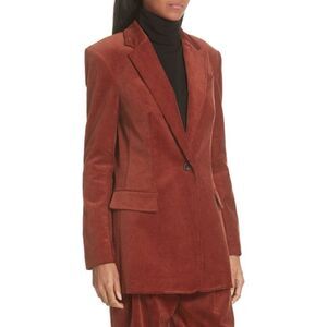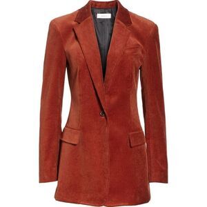 The sharply tailored silhouette of this rust-hued corduroy blazer tempers the retro aesthetic.