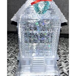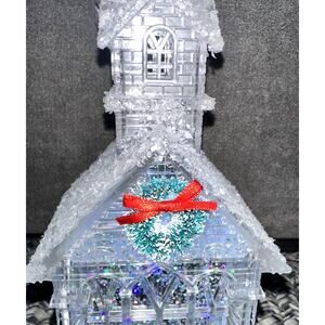 ALDI 11" White Acrylic Church Light Up Glitter Wreath Christmas Snow Globe