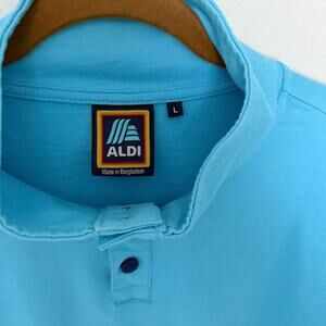 ALDI Blue pop over top Quarter Button Size Large in great condition, only worn a couple of times. Size large. 60% cotton 40% polyester. Get the best deals when you bundle items together. I’ll respond to any offer you send me. 0376-2501