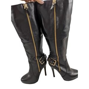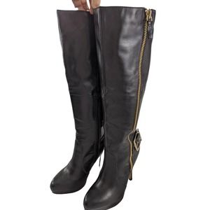 ALDO! AWESOME BAIA BLACK LEATHER ZIPPER DETAIL STILETTO BOOTS! SZ 7
