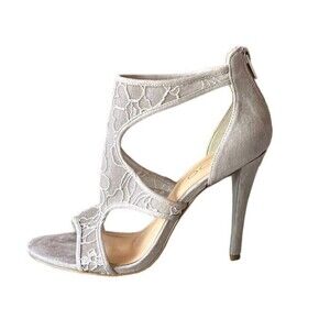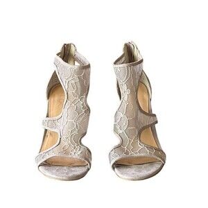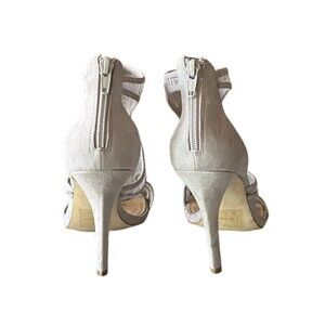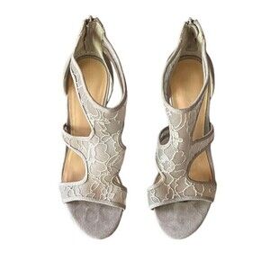 ALDO Beige Suede Embroidered Mesh Open Toe Strappy Back Zip High Heels Women 7.5
