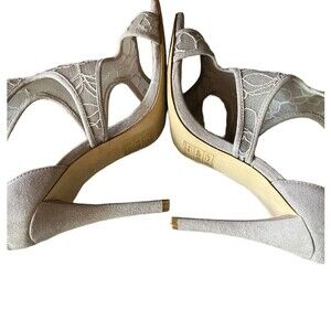 ALDO Beige Suede Embroidered Mesh Open Toe Strappy Back Zip High Heels Women 7.5