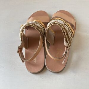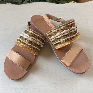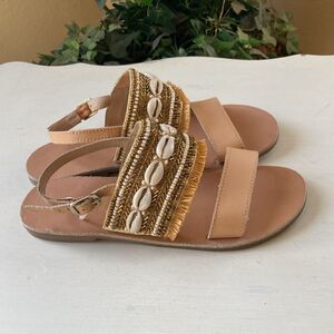 ALDO Belimandra Shell Fringed Beaded Embellish Ankle Strap Flat Sandals Size 6