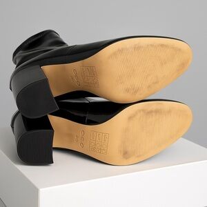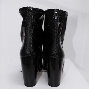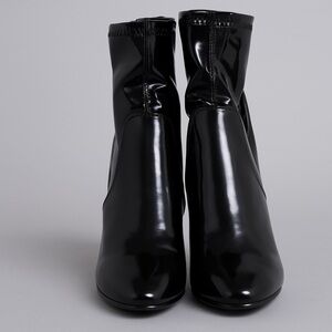 Sleek and stylish ALDO Lovelee ankle boots in glossy black patent finish. Designed with a rounded-square toe, chunky block heel for stability, and a rear zipper closure that makes them easy to slip on and off. The shaft has a slightly relaxed fit at the top, giving them a chic, modern look that pairs effortlessly with jeans, skirts, or dresses.