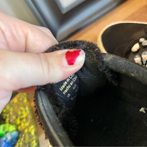 Back of right shoe has been semi chewed pretty much just on the pull on tab of back of shoe