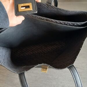 This elegant black leather tote bag is perfect for any occasion. Its sleek design and high-quality material make it a must-have accessory.