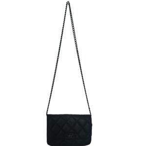 Elegant black quilted shoulder bag with a sleek chain strap. Perfect for any occasion.