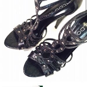 ALDO Black Snakeskin Leather Open Toe Platform Heels Size 9