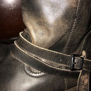 Size 7 distressed brown leather boots , very small hint of metallic tones in brown. Straps can come on and off. Lightly worn (under 10 times)