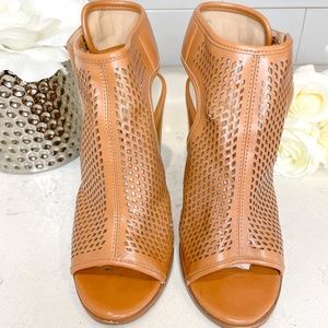 ALDO Brown Camel Vegan Leather Heels with Chunky Heel & Gold Snaps - Size 7.5