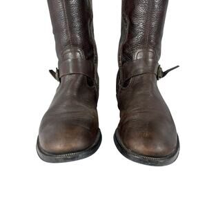 ALDO! ESPRESSO BROWN PEBBLED LEATHER DUAL BUCKLE DETAIL LOW HEEL BOOTS! SZ 8.5M