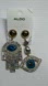 Elegant earrings with eye motif. Gold finish with blue and silver accents. Perfect for a chic look.