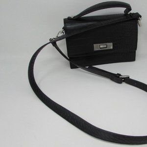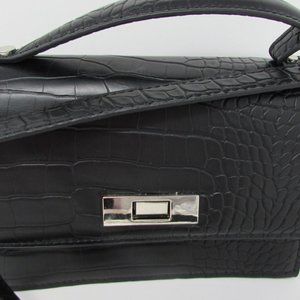 ALDO HANDBAG BLACK 10 1/2" X 9" X 4" SILVER ACCENTS - CROCODILE DESIGN W/CHAIN!